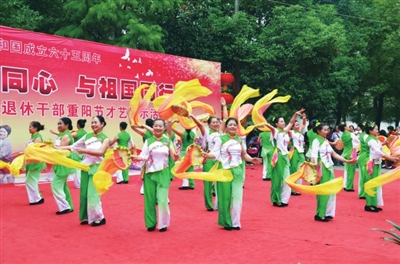 文艺汇演由市委老干部局主办。汇演现场,舞蹈、歌曲、双簧、京剧等节目精彩不断,现场气氛热烈奔放,欢呼声和掌声不断。离退休干部在欢庆的氛围中,迎接国庆节和重阳节“两节”的到来。
