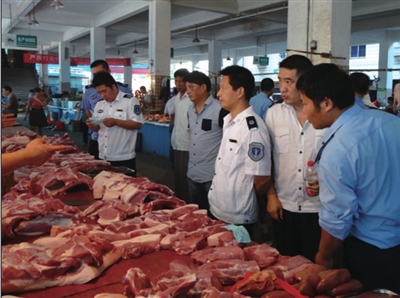 9月28日,市、区两级动物卫生监督所联合组建专班,对屠宰场、农贸市场、超市等地点进行拉网式检查,共发现并收缴白条肉100余公斤,并依法立案查处。据悉,节日期间,咸安区动物卫生监督所将实行日巡查制度,确保市民吃上放心畜产品。 庞赟卢雅清/摄
