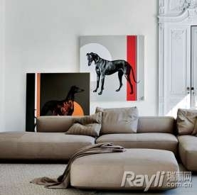 忠诚大型犬,一左一右,一上一下,活灵活现的似乎随时会从墙壁中走过来,素雅的空间一下子活了起来。
