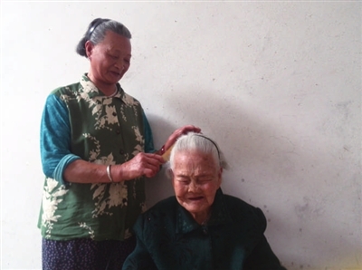 在外人看来,这个年老痴呆的婆婆是包袱是负担,但在华完保心里,她是亲人是母亲。今年村书记熊红海考虑到华完保年事已高,照顾龚爱莲比较辛苦,多次劝说华完保把送龚爱莲老人送到福利院,可华完保执意不肯。她说:“‘龚姨’健在一天我就要照顾她一天。送到福利院是轻松些,但我不忍心,更不放心。我要一直照顾她,为她养老送终。”
