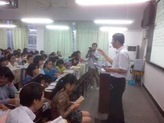 本报讯(记者 刘会文)10月19日,鄂南高中首次在高二年级文科班举行了“智慧作文”专题讲座,邀请高级语文教师、思齐教育老师王定授主讲。王定授曾多次参加高考语文阅卷、作文教学有独到研究,他妙趣横生的讲课博得阵阵掌声,引爆全场,教室里座无虚席,不少学生家长也闻讯赶来站在窗外听课。