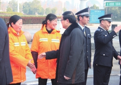 市委书记任振鹤经常关心、慰问环卫工人,询问环卫工人的生活条件是否得到提升,生产环境是否得到改善,工人工资是否得到切实提高,并多次嘱咐相关部门加大力度做好“城市美容师”的保障落实工作。2011年,市政府一次性投入资金680万元购置环卫新型设备,实现环卫作业车辆的提档升级。同年,环卫临时工全部纳入了社会保险统筹,实现了环卫职工“五保合一”全覆盖,真正解决了环卫工人的后顾之忧。这一实事举措当时在全省也不多见,得到了环卫工人和全社会的一致赞许,还一时成为兄弟市州考察学习的典型和示范。