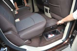 此外,让记者印象最深刻的是隐藏的储物空间,这在破窗盗窃案高发的当今是个非常贴心的设计。在销售员的提示下,记者拨开后排座位的脚垫,出现了一个长方形的盖子,打开盖子后记者发现储物盒里可同时容纳6瓶矿泉水。