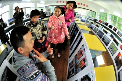 昨日上午,市摄影家协会一行来到咸宁特殊教育学校,为孩子们带来了咸宁第二届摄影艺术作品。在无声的世界里,孩子们好奇地观看一幅幅照片,不停地向老师提问,图为该校教师通过手语给学生进行讲解。 赵忠志/摄