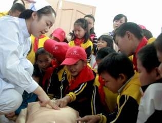 28日,市中心医院同济咸宁医院的医务人员来到咸安区浮山实验中小学,给该校师生上了一堂生动的心肺复苏及现场急救课,受到欢迎。 (陈伟琴)