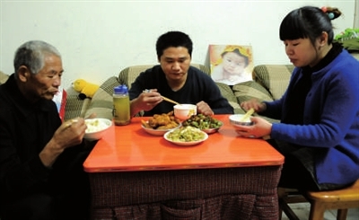 晚上8点钟,送了13个小时快递的吴金玉拖着疲惫的身子回到家中,狼吞虎咽吃下妻子做好的热乎乎的饭菜。