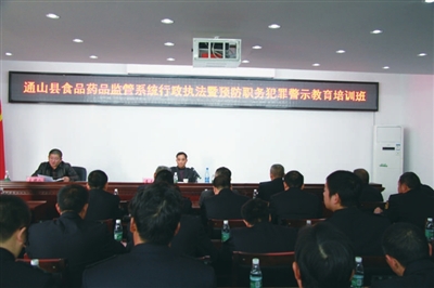 为进一步规范食品药品安全监管执法行为,有效规避执法风险,远离职务犯罪,11月14日,通山县食药监局对全系统干部职工进行了行政执法暨预防职务犯罪警示教育培训。