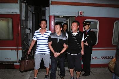 13日晚8时30分,三名民警押着陈某搭乘海口开往咸宁的K1168次列车,并于14日晚8时14分到达咸宁。