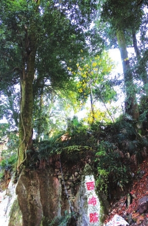 沿着星星竹海门楼旅游公路上山2公里处,只见路旁巨石上雕刻着“西岭陈”三个字,这便到了星星村西岭陈湾中心地带。在石刻“西岭陈”之上面积不足5亩的林地范围内,错落有序地生长着18株古树,株株古树树姿优美,巍峨挺拔;棵棵树干遒劲屈曲,枝桠繁茂,成为当地一道美丽独特的风景。