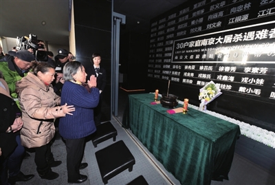 新华网消息 为迎接首个国家公祭日,南京大屠杀死难者遗属家祭活动12月1日在侵华日军南京大屠杀遇难同胞纪念馆启动。