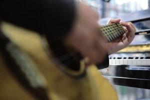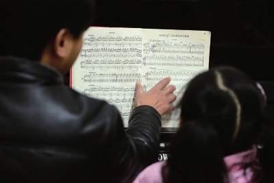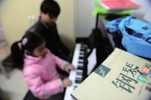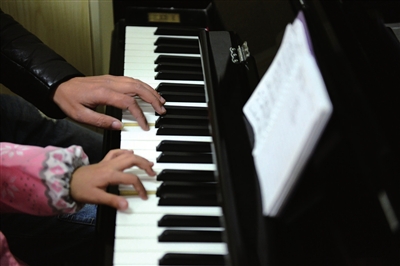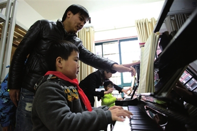 12月3日,吃完中饭,记者跟随阿豹一起前往培训班。“先不跟你聊了,我要教学生练琴了。”阿豹告诉记者,既然做这一行就要认真对每一位学生负责。
