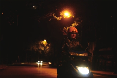 晚上8点,阿豹又骑着摩托车赶往酒吧驻唱,一直唱到10点半。