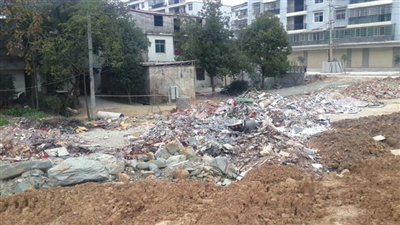 记者在西环大道双龙社区办公楼附近看到,一块空地上,堆满了砖头、石块、木板等建筑垃圾。“一个星期来,每天下午或晚上都有车子运来建筑垃圾倾倒在此处。”附近居民高先生介绍,此处居民的生活垃圾每天都有人清理,可这建筑垃圾却没人管,成了让居民头疼的事情。