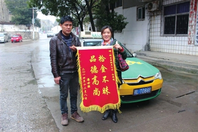 万余元现金完璧归赵,冷女士夫妇十分感动,当即表示要感谢杜艳明,可他没有留下姓名便离开了。夫妻俩记下了杜艳明的车牌号,次日一早便将一面锦旗送到了祥生出租车公司,向拾金不昧的杜师傅表示感谢。