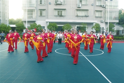 当地群众先后自发组建了腰鼓队、歌舞队、龙灯队、楚剧团等多个民间文化娱乐团体,参与娱乐活动人数由原来的数十人发展到现在的1000多人。图为该镇舒桥社区歌舞队在表演广场舞。 (通讯员吕新林)
