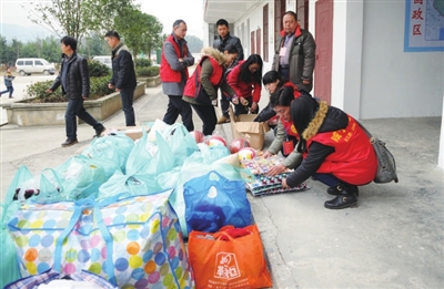 一个星期之后,咸宁义工主动联系学校,同时发动爱心人士,收集了数百件过冬衣物,清华教育咸宁培训中心也出资购买了学习用品,一同送到了学校。(方达星/摄)