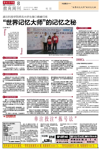 13日在海口结束的第23届世界脑力锦标赛上,湖北科技学院两名大学生余子力、张静成绩突出并获封“世界记忆大师”的称号。他们是怎样走上记忆大师之路,记忆大师是如何炼成的?近日记者采访了载誉归来的记忆大师及他们的团队。