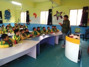 据咸宁市义工组织相关负责人介绍,此次该公益组织援建咸宁的“魔法教室”以“海洋之心”为主题,面积为130平米,该教室将娱乐性与学习性有机结合,让孩子们玩在其中,学有所得。赵骥/摄