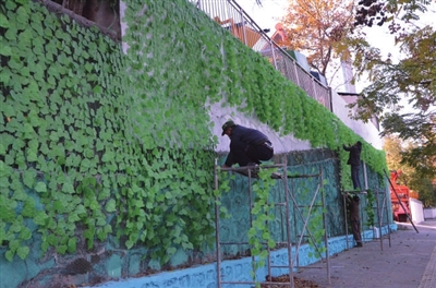 17日,记者在市区银泉大道看到,这条城市主干道正在进行立面刷新、立面清洗、景观围墙改造、围墙挂绿等方面的综合环境整治。图为街道围墙挂绿后,焕然一新,犹如一道靓丽的风景线。周阳/摄