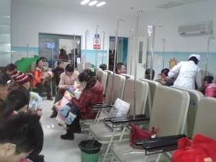 记者在市内各医院小儿注射室、诊所观察,真有点“人满为患”的感觉,记者看到坐门诊的市中心医院儿科主任医师、副教授俞惠莲忙得不可开交,父母或者爷爷奶奶抱着患儿排着长队等候着看病。