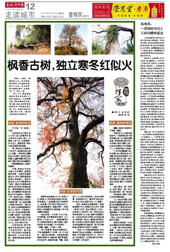 “很多人认为枫树是枫香树,其实枫树枝干虬曲,树型矮小;枫香树高大挺拔,俨然是树中的伟丈夫。”周习九说:站在枫香下,仰视的是它的伟岸,它的雄犷,它的坚守。