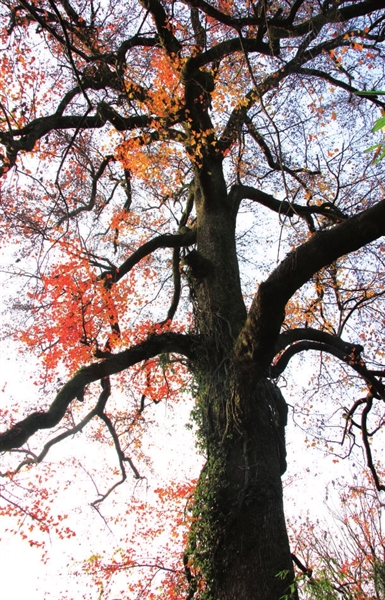 枫香古树就像一位饱经风霜阅历深厚的睿智老人,令整个湾子的村民肃然起敬。一直以为,生命之树常青,当四季轮回后才知道:有一片火红永远在寒冬里守候,这就是一片景色,这就是五彩斑斓的枫香……