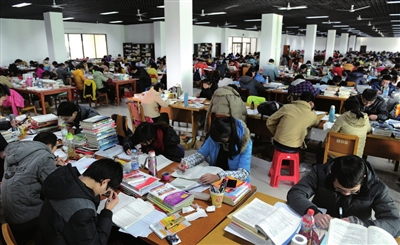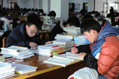 “熬了一年多,好不容易快要考试了,有时候又想让时间过得慢点,再给我们两个月复习,但是有时也希望明天就能考试,考完就可以彻底放松了。”小刘说。像小刘一样,小余为考研做了很长时间的准备,现在一天的学习时间最少18个小时,基本把这里当成了家,吃住在这里,实在困了,就趴在书桌上小睡一会儿,“无论如何艰辛 考研仍然是我无悔的选择,现在只有抓紧最后的时间加紧复习,争取考个好成绩!”小余说。