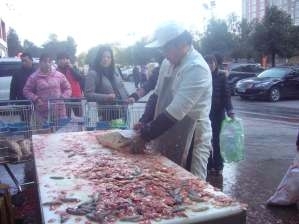 卖场促销员则称,每天卖出去的鲜肉,70%都是请超市帮忙腌制,鲜肉灌制香肠是厂家调派专业技术人员,根据出厂调料的口味,只收取材料费现场为市民加工制作,不少市民对超市这种细致、周到、贴心的服务大加赞赏。