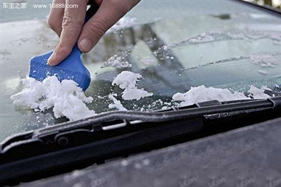 挡风玻璃结冰后,可以使用汽车除冰铲和喷雾除冰剂来清除。使用除冰铲时需要注意的是由于冬天风比较大,冰里可能会有许多细小的沙尘,使用时一定要注意不要损伤到玻璃。
