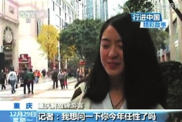 “2014你任性了吗?”央视继“你幸福吗?”之后推出街头采访第二季“你任性了吗?”央视采访中,有纪念结婚一路骑行的辽宁夫妇,有为爱表白的上海妹纸,有逃课出游的同学,还有从不任性、把没座站着当作锻炼的大爷……不同的平凡个体讲述他们的2014与他们的任性。街访视频一推出便走红网络,有网友说,央视做这期节目好任性,接地气了。说起任性的话题,网友们的回答却在跟风中统一,他们对任性的总结出奇地一致:“有钱,任性;没钱,认命。”
