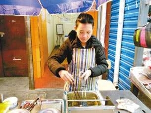 今年25岁的党翠翠是西安工程大学思想政治教育研究生。喜欢寻觅美食,尤其喜欢吃臭豆腐。于是她和两名研究生同学在西安市吉祥村综合市场内开了家臭豆腐店。开业两个多月来,这个小店已经在网上小有名气,她希望用这种方式能够接触社会,完成一个“吃货”的梦想。 (人民网)