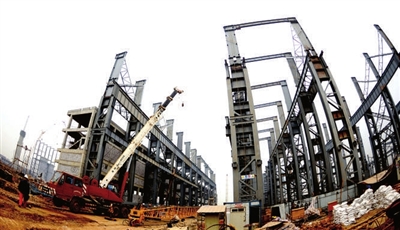 7日,嘉鱼县金盛兰科技有限公司建设工地上,工人们正在建设炼钢厂房。该项目总投资68亿元,占地面积5000亩,其中一期已累计完成投资26亿元,预计今年5月建成投产。项目全部建成投产后,年产优特钢材可达320万吨,轧材300万吨,产值将超过250亿元,提供就业岗位1万多个。