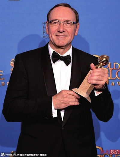 而奥斯卡影帝凯文·斯帕西凭借在《纸牌屋》中的出色表现,终于获得了本届电视类金球奖最佳男主角。凯文·斯帕西上台领奖时激动地说:“这只是我复仇的开始。我入围八次金球奖,竟然今天才拿到!” 随后他说,“感谢Netflix支持这部剧集,和这些不可置信的工作人员一起讲述了这个故事是我的荣耀,编剧团队非常棒,还有我的经纪人。”