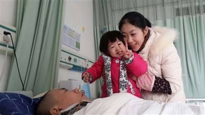 在武汉医治的2个多月里,潘兰兰和婆婆两人带着2岁的女儿,每天守在医院,轮流照顾丈夫卢伟。“虽然他不会说话,不会动,但就这样和女儿一起守着他,也觉得一家人很幸福。”潘兰兰说,丈夫生病前,对女儿很是宠爱,每次外出,总要带回来一个娃娃送给女儿,家里的娃娃堆成了小山。而女儿得知爸爸病了后,也似乎长大了。尽管只有两岁,但她不吵不闹,每天都要陪着爸爸说话,亲吻爸爸,给爸爸讲自己看到的动画片里的故事。