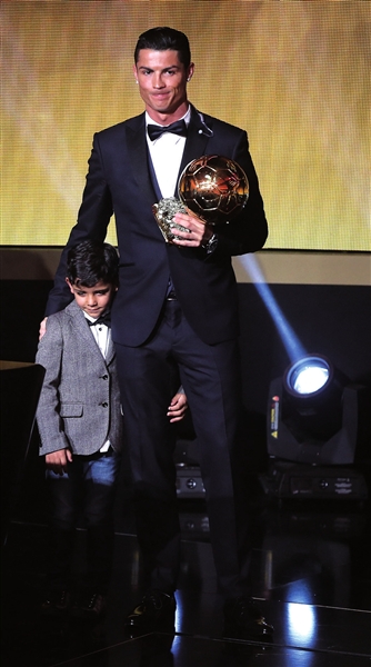 本报综合消息 国际足联(FIFA)2014年度颁奖大典于当地时间12日在瑞士苏黎世举行,皇马球星、葡萄牙国家队队长克里斯蒂亚诺·罗纳尔多(C罗)获得FIFA最佳男运动员奖(金球奖),继2008年和2013年后第三度加冕足球界最高个人荣誉。