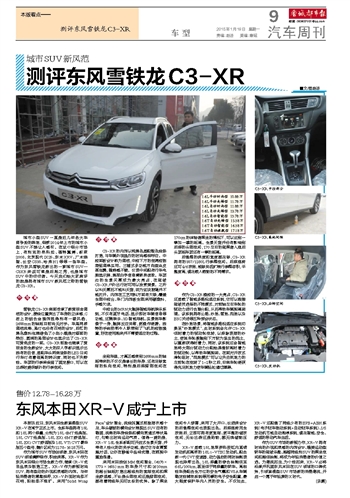 城市小型SUV一直是近几年各大车商争抢的阵地,细数2014年上市的城市小型SUV不禁让人感叹。在这个细分市场上,有别克的昂科拉、福特翼搏、标致2008、北京现代IX25、东本XRV、广本缤智、长安CS35、哈弗H1等等一些车型。作为东风雪铁龙新出的一款城市SUV—C3XR来说可谓是后起之秀,也是城市SUV中的佼佼者。今天我们给大家测评的就是拥有城市SUV新风范之称的雪铁龙C3-XR。