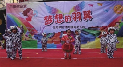 本报讯(记者夏咸芳)伴随着冬日里温暖的阳光,满怀着喜悦的心情。元月11日,温泉香城国际幼儿园在温泉瑞融国际广场门前举行了“梦想的羽翼”迎新年庆元旦的主题活动。