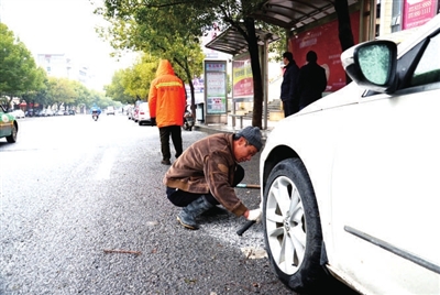 本报讯 (记者郑璐 实习生刘玉)28日中午12时许,市城管执法局的工作人员带着锤子、铲子等工具来到南岛咖啡公交站台,把挡在公交站台前的4处停车线全部铲除,一旁候车的乘客啧啧称赞。