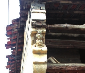 走进村里82岁的胡仁保老人的百年老屋,又见飞檐下留有狗头砖雕。老人说,早年很多房子都有狗头雕像,文革时都被砸了,他家这个当时是用泥巴糊起来才得以幸免。