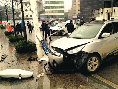 本报讯(记者毛亚轩)昨日下午近4时许,市区温太路国际酒店路段,一辆越野车和一辆轿车发生碰撞。对此,交警提醒广大司机,雨雪天驾驶汽车需要减速慢行。