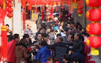 昨日是农历小年,咸安区永安办事处南山社区余家垅小区居民聚在一起共享本报主办的“百家宴”,喜迎羊年春节。图为百家宴现场。吴涛佘影/摄