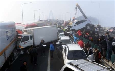 新华网消息 据韩联社11日报道,位于韩国仁川市的永宗大桥路段当天上午9时许发生一起百余辆汽车连环追尾的严重交通事故,至当天下午已致2人死亡、65人受伤,伤者中有7名中国人。