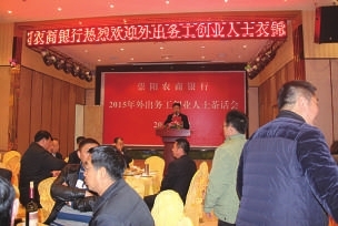 2月14日,崇阳农商银行给了崇阳籍外出务工创业人士一个意外的“情人节”礼物。由崇阳农商银行举办的“2015年崇阳籍外出务工创业人士茶话会”隆重召开,以此热烈欢迎游子们衣锦还乡。此次茶话会,崇阳农商银行相关负责人与全县各乡镇150多名外出务工创业人士观看了由崇阳农商银行协办的“第三届崇阳热线民间春晚暨游子归迎春晚会”。 (王习和)