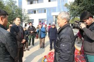 2月13日,嘉鱼县卫计局为官桥镇福利院老人开展送粮油、送衣物、送健康活动。图为副县长饶自斌看望福利院老人。 (周文广 章亚楠)