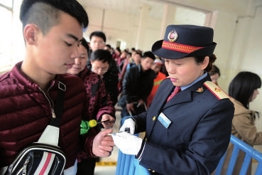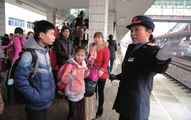 2月27日上午11时许,K157北京至湛江的列车将停靠咸宁火车站,夏元芝正在做接站前的准备。半小时之后,列车到站,夏元芝早已站在站台上,对旅客进行引导。十几分钟之后,又一辆列车到站,这是咸宁火车站春运期间加开至深圳的临客。“请问14号车厢在哪里?”“你能帮我拿一下行李吗?”夏元芝开始忙碌起来。