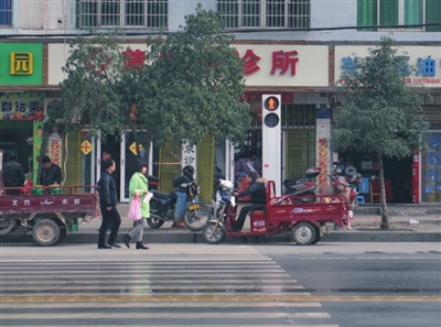 记者在现场看到,该处岔路口共有3处人行横道,其中另外两处的行人过街指示灯运转正常,而其中一处的指示灯不知何故,一直处于红灯状态,让来往行人“不知所措”。