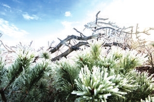 山峰起伏着,风擂铜鼓包,雾绕云中湖,搅拌雾的升腾,那是无数次激动的呼吸,风与雾杂交,便分娩了闪烁的冰花。一季雾凇,硬是给九宫山分了家,山腰之上,已是冰晶雪白,如耄耋老年,富贵在心,期颐在望,放射智慧的光芒;山腰之下,还是年少青春,少不经事的春季,在花枝招展地唱戏。不老松,不知有几多梦想,愿你壮硕千年,用眼神记录风云变幻。