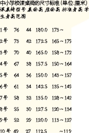 记者翻查资料了解到,2003年1月1日,国家质检总局又颁布《学校课桌椅功能尺寸标准》,将中小学生使用的课桌椅分为10个不同的尺寸档次,不同身高的学生都有相关的尺寸标准,以保护学生的身心健康。