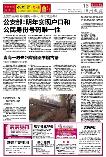 公安部:明年实现户口和公民身份号码唯一性