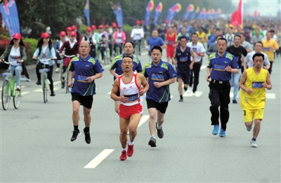 从市财政局路口到市体育中心,长跑的选手们犹如奔腾的长龙,在咸宁大道上蜿蜒前行。阳光下的滴滴汗水,不断从选手的脸上、身上洒落在香城大地。这是运动的激情、这是汗水的生机,壮观的运动场面,似一道风景线,吸引了沿途的市民驻足观看。有的为选手们加油打气,有的掏出手机拍照记录,有的则干脆加入到奔腾洪流之中,感受着运动带给生命的热度。